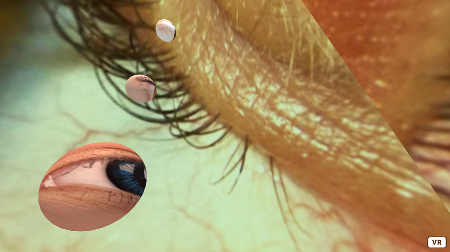 Using Virtual Reality to allow the audience to delve into the eye and displace themselves from their actual space in time. Now more than ever we need to find accessible ways to transport ourselves into new worlds. Through VR we can access immersive experiences wherever and whenever.